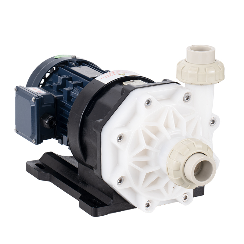 氟塑料磁力泵的设计不仅具有普通磁力泵的结构紧凑,外型美观,体积小,躁声低,运行可靠等优点,且其过流部件全部采用目前世界上耐腐蚀性能好的氟塑料,隔离套采用特殊材料制造,具有高强度的力学性能,消除了普通磁力泵存在的磁涡流现象。因此,氟塑料磁力泵可输送任意浓(强)度的酸、碱、氧化剂等腐蚀性介质而毫不受损。