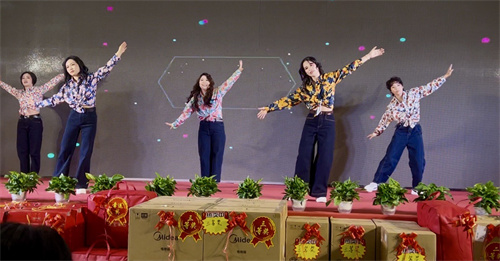 紧接着,杰凯全体股东共同登台,举杯祝酒,正式开启丰盛晚宴。伴随着热情洋溢的开场舞表演,现场氛围瞬间点燃。